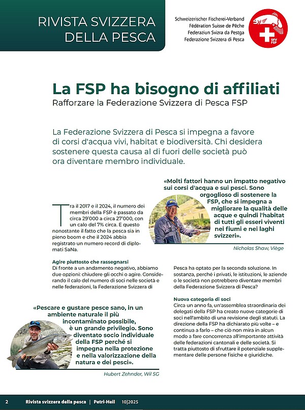 - LA FSP chiede finalmente aree di protezione per i pesci